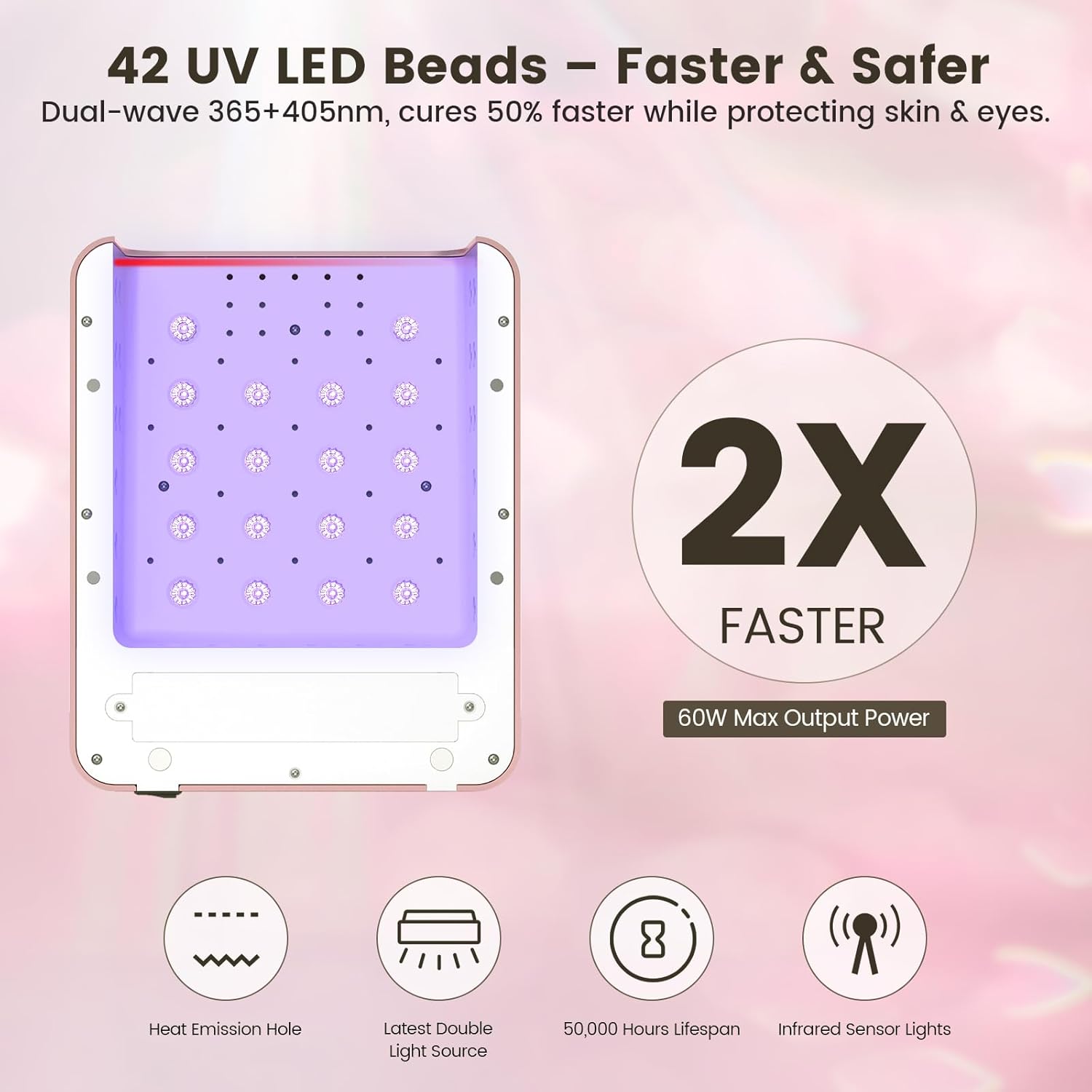 - 【60W High Power Nail Lamp & 42 Beads high power】: Lavinda UV nail lamp features 42 dual-wave UV+LED beads (365nm+405nm) that cure gels up to 50% faster than regular nail lights. The soft, glare-free illumination protects skin tone and eyes. This LED nail lamp works with all UV/LED gel brands. (Not suitable for regular nail polish.)
