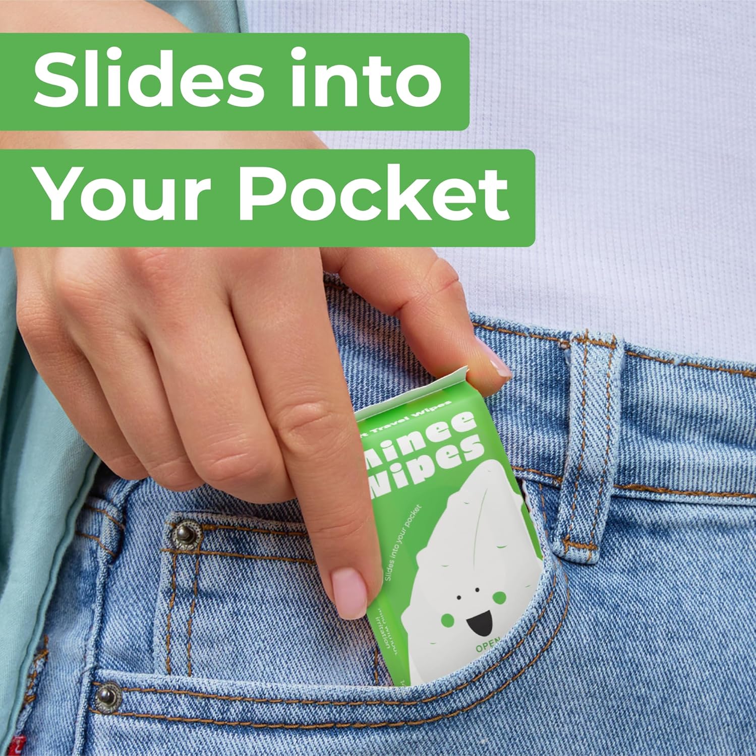 - 💚TAKE ANYWHERE, USE EVERYWHERE: Minee travel wipes are the ideal mini travel essentials, perfectly sized for any journey. Whether you're flying or on a road trip, these travel size wipes fit seamlessly into your travel toiletries, ensuring you have travel wet wipes and travel hand wipes ready for every adventure.