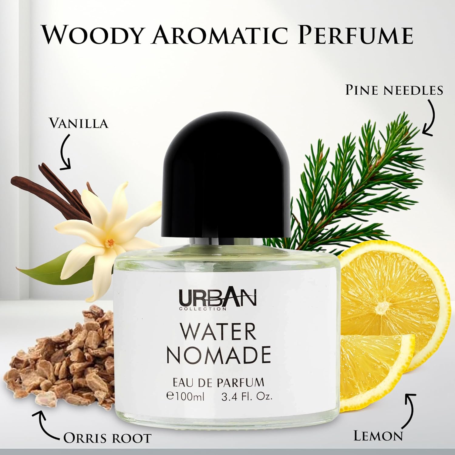 - Aromatic Perfume: Formulated with juniper, lemon, bergamot and pepper notes on top; a heart of pine needles, incense and orris root; and a base of vanilla, sandalwood and amber, Urban Collection Water Nomade is a woody aromatic perfume for women and men.