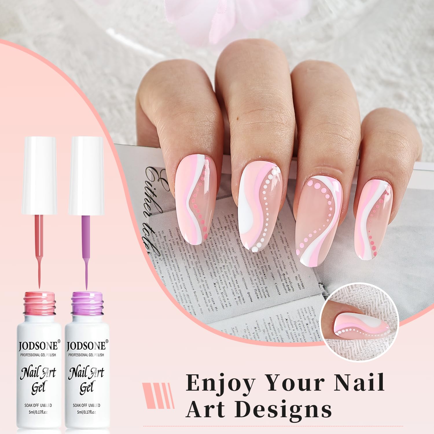 - You’ll Received:10Pcs Nail Art Gel Liner Paint Set.With the built-in thin brush, you don't have to get out your set of brushes for adding details and lines. of nail manicure decoration, especially for nail art manicures. It not only creates a gorgeous momentum for your nails.