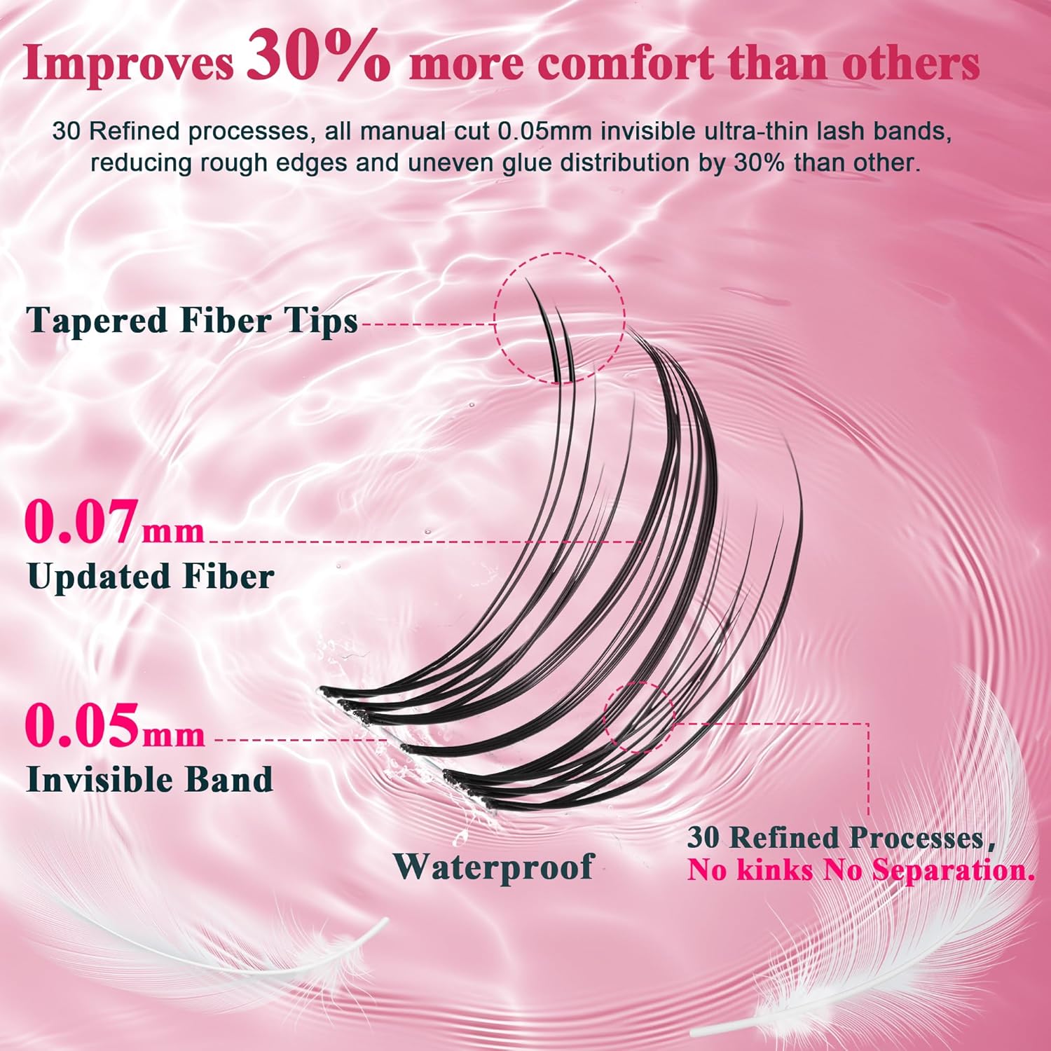 Lash Clusters Kit - Wispy Natural & Manga Spiky Lash Cluster Invisible band 8-16mm Eyelash Clusters Kit D Curl Lash Extension Kit WideSpan with Bond and Seal DIY at Home