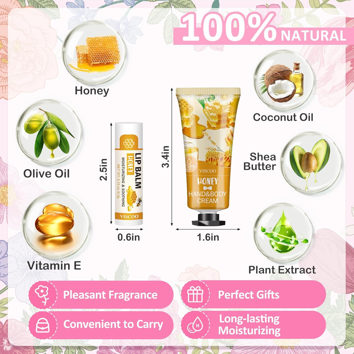 - 【Thank You Gifts Sets】 This appreciation gifts set includes 4pcs hand creams, 4pcs lip balms. The perfect combination is good for your guest gift needs or daily personal use.