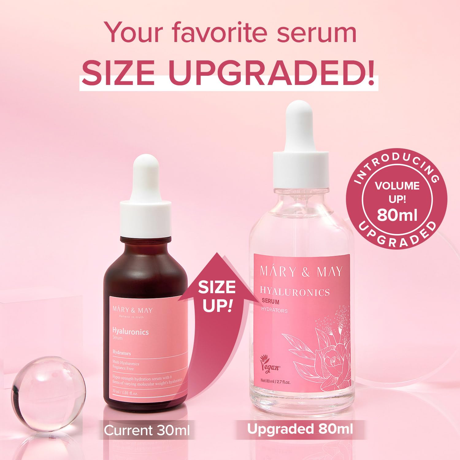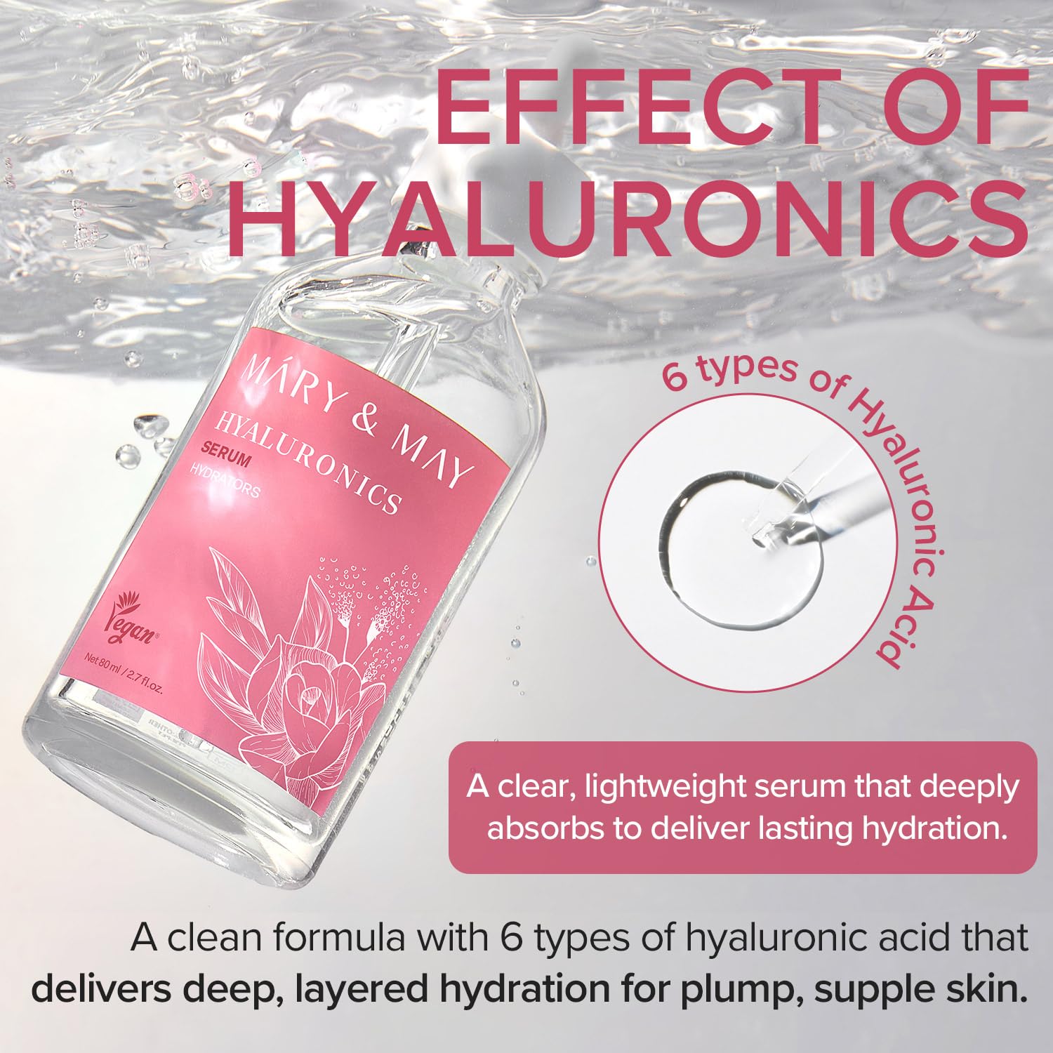 Mary&May Hyaluronics Serum with 6 Types of Hyaluronic Acid Complex for Deep Hydration and Moisture Retention - Fragrance Free, EWG Verified, Cruelty-Free for Dry Dehydrated Skin 2.71 fl.oz.