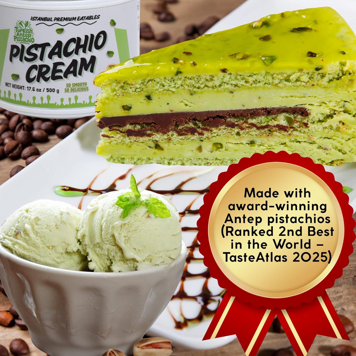 Istanbul Premium Pistachio Cream, Pistachios for Dubai Chocolate Bar, Cream for Dessert, Kataifi & Knafeh, Crema de Pistacho, Non-GMO,1.1 LB (500gr)