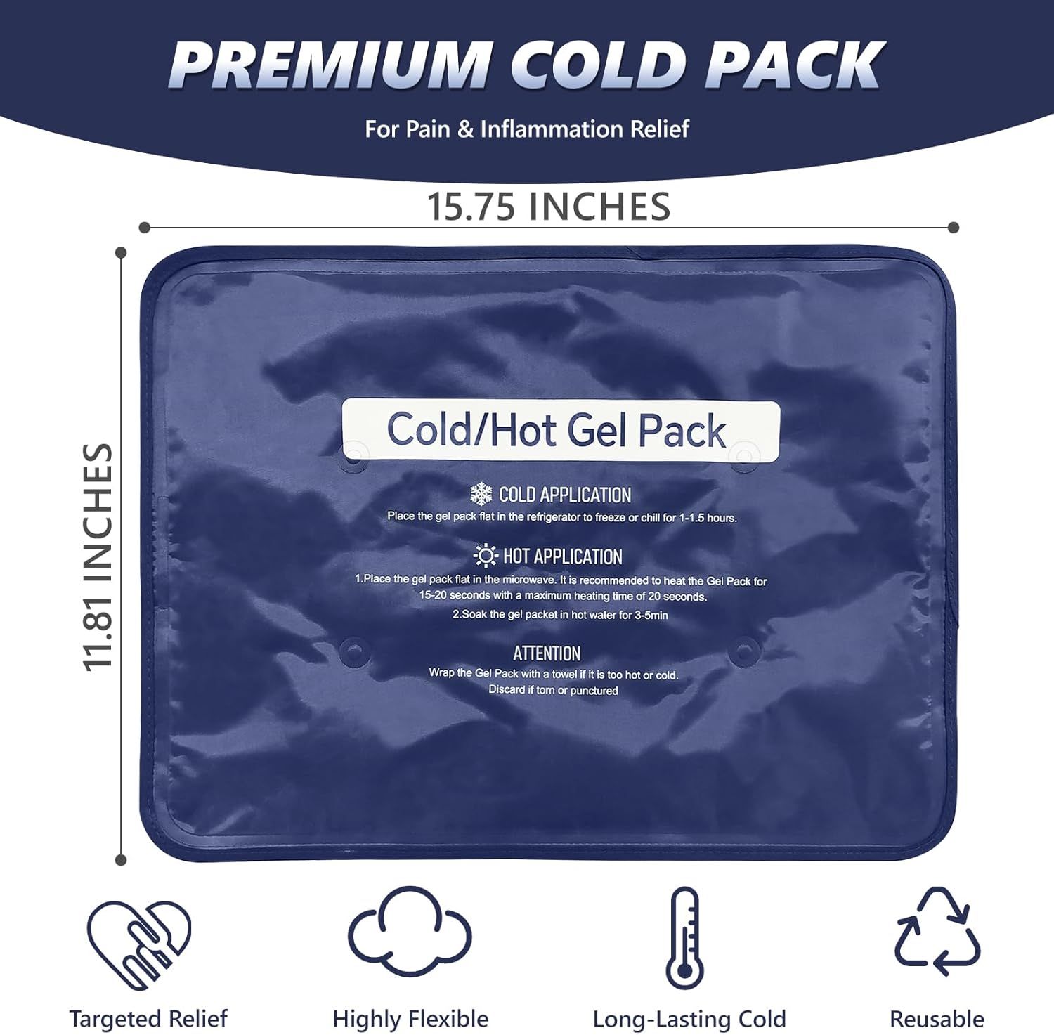 - Long-Lasting Cold Retention: Our high-density gel ice pack stays colder longer than regular ice packs, delivering extended soothing relief. The reusable cold pack maintains optimal therapeutic temperature while remaining flexible - excellent for muscle recovery or joint pain relief session after session