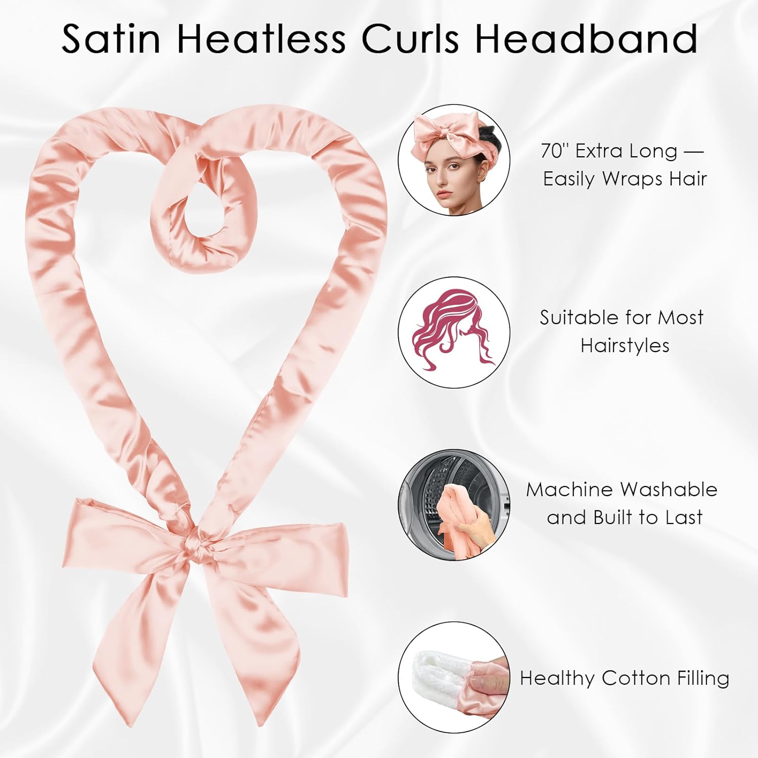 weiwei Satin Heatless Curls Overnight Hair Curler Headband, No Heat Curls Overnight Hair Curlers to Sleep In, 70" Hair Curlers No Heat, 9 Pcs Satin Heatless Curling Set for Women Long Hair