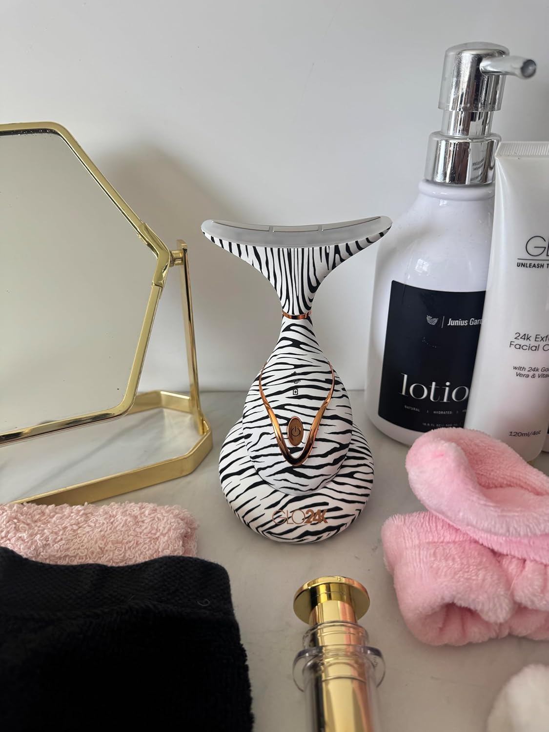 - Glo24k red light beauty device for face and neck—a soothing, at-home step for jawline and neckline care as part of your daily routine.