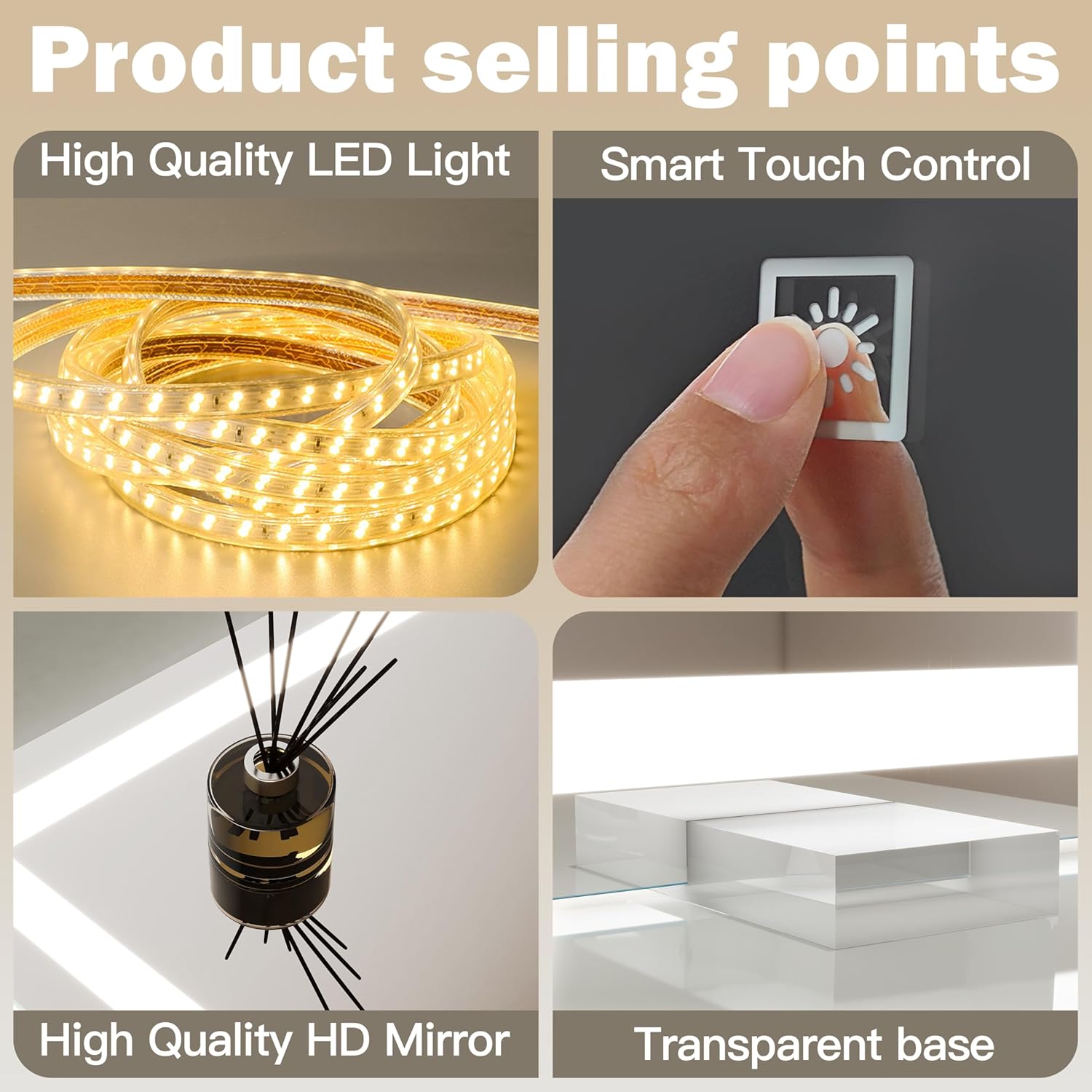 - 【Memorable Gift】 The large makeup mirror is an ideal gift for makeup lovers, skincare enthusiasts, teens, or working professionals. Whether it's for a birthday, Christmas, or any other special occasion, this lighted makeup mirror will be a thoughtful and practical gift.