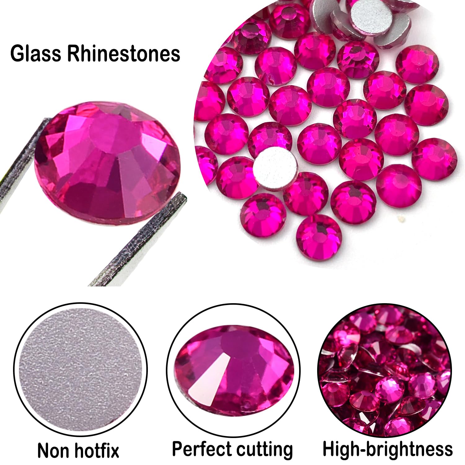 Flatback Glass Rhinestones,Bedazzler Gems 1440pcs Non Hotfix Crystal Rhinestones for Nail Charms Crafts Clothes Tumblers,Hot Pink,SS16