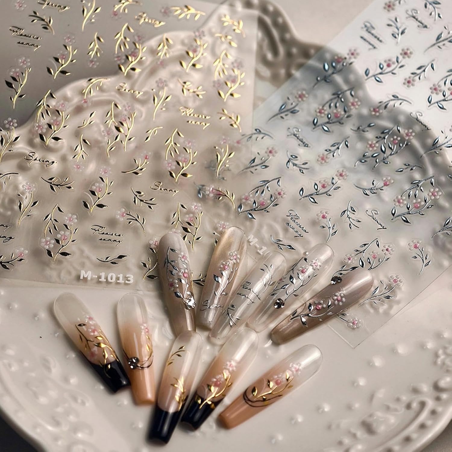 - Exquisite Design:Our nail design stickers combine a variety of popular patterns,allowing you to create salon-quality manicures at home. You can also use these elegant flower nail stickers for wedding bride nail art design. They won't leave any residue after being removed