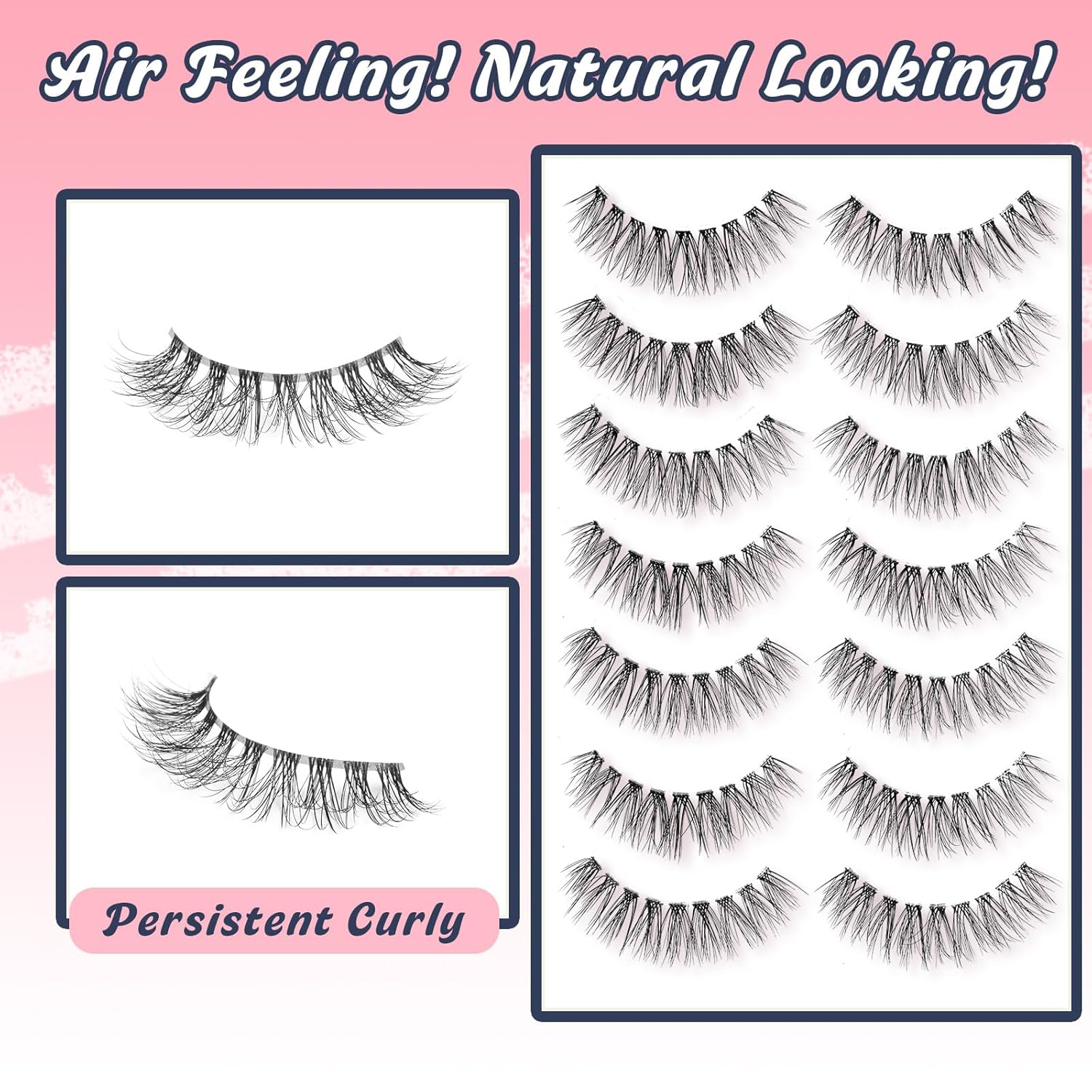 - FALSE EYELASHES WISPY: Length: 8 mm-13 mm, glasses friendly. Classic natural lashes design, this short fake eyelashes will make your eyes look brighter and energetic, give you a charming effortless make up look
