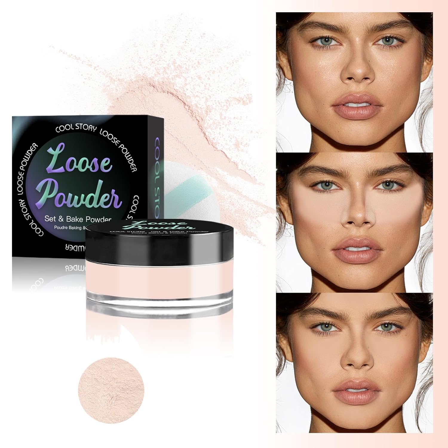 Loose Setting Powder, Bake Makeup Powder Full Coverage Matte Finish (Medium, 6g/O.21oz)