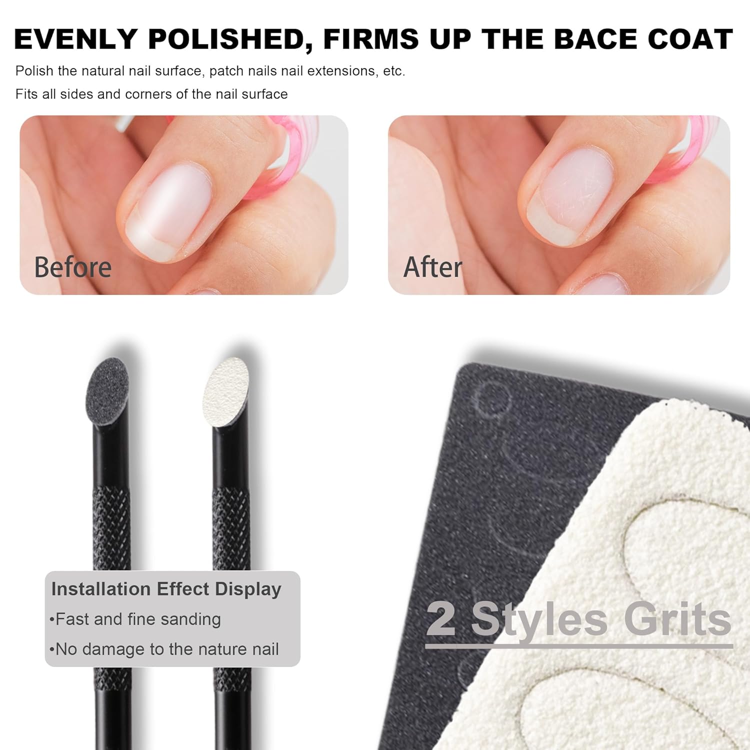 - Self-adhesive Mini Nail Files - The back of the nail file sandpaper is self-adhesive, very easy to use and replace, the mini sandpaper piece need to be used with cuticle pusher tool. These nail polishing sand papers are disposable, more healthy and hygienic.