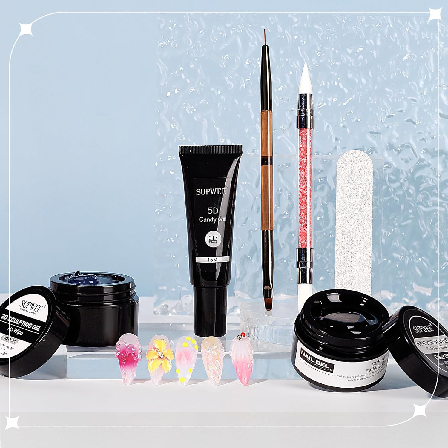 - Included Components : Builder Gel, 3D Sculpting Gel, Clear Molding Gel, Nail Art Pen