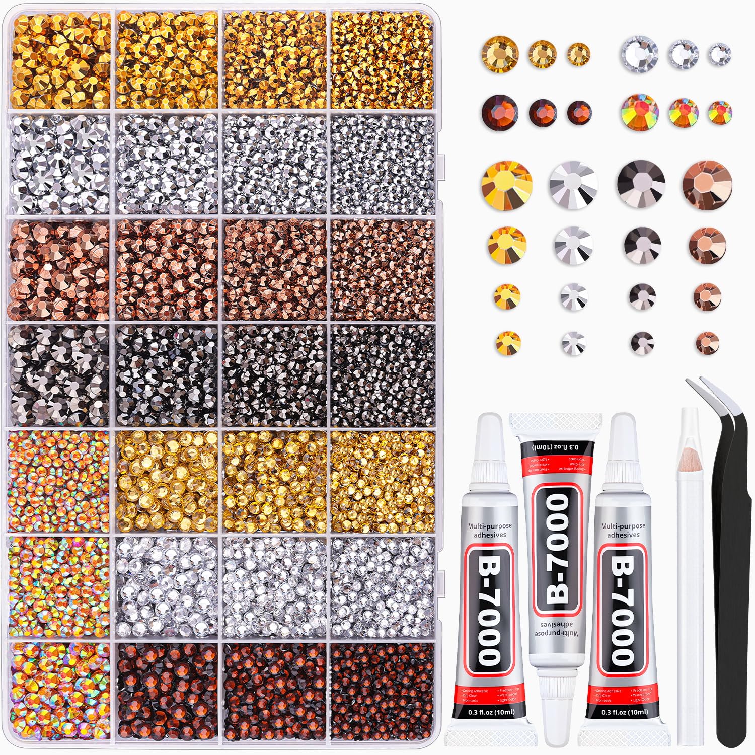 20000Pcs Metallic Rhinestones for Bedazzling with 3Pcs B7000 Jewelry Glue, Resin Rhinestones for Crafting Crafts,Bedazzler Kit Flatback Gems for Clothing Shoes Tumblers Nail Art