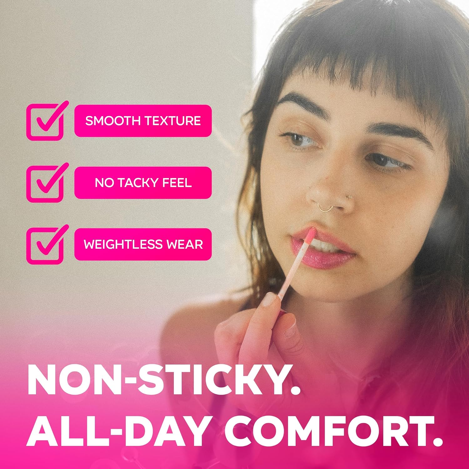 - Weightless wear all day: This non sticky lip gloss glides on smooth with no tacky residue—perfect for lips gloss lovers who want comfort and shine without the mess of sticky lip gloss.