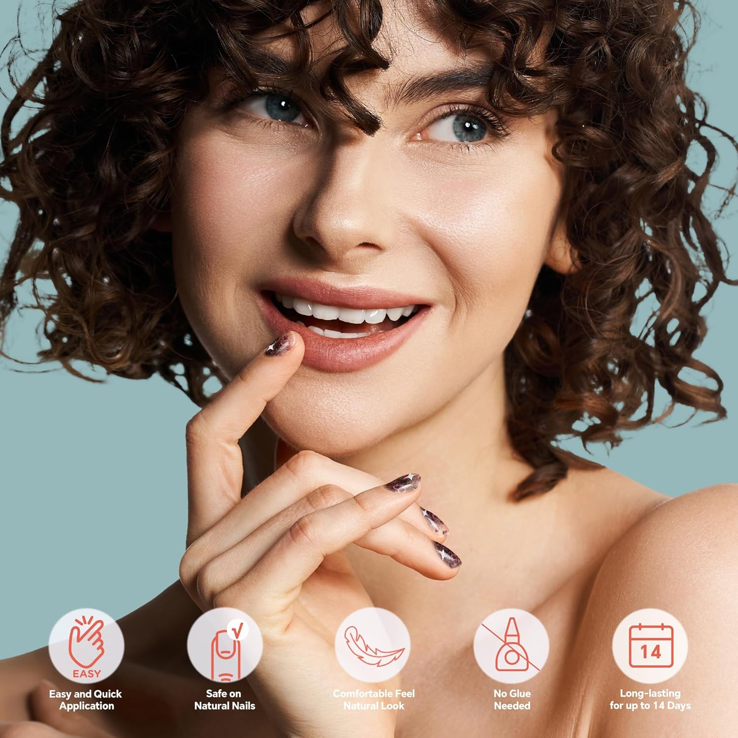 - 🌞【Salon-Polish Nails in 5 Min | 60s Set, Zero Mess! 】Slap on mirror-shine nails faster than your coffee brews. Peel → Press → Set → Go! Skip salon waits and harsh removers. Wake up glam or refresh mid-lunch break. Zero skills. Zero stress.