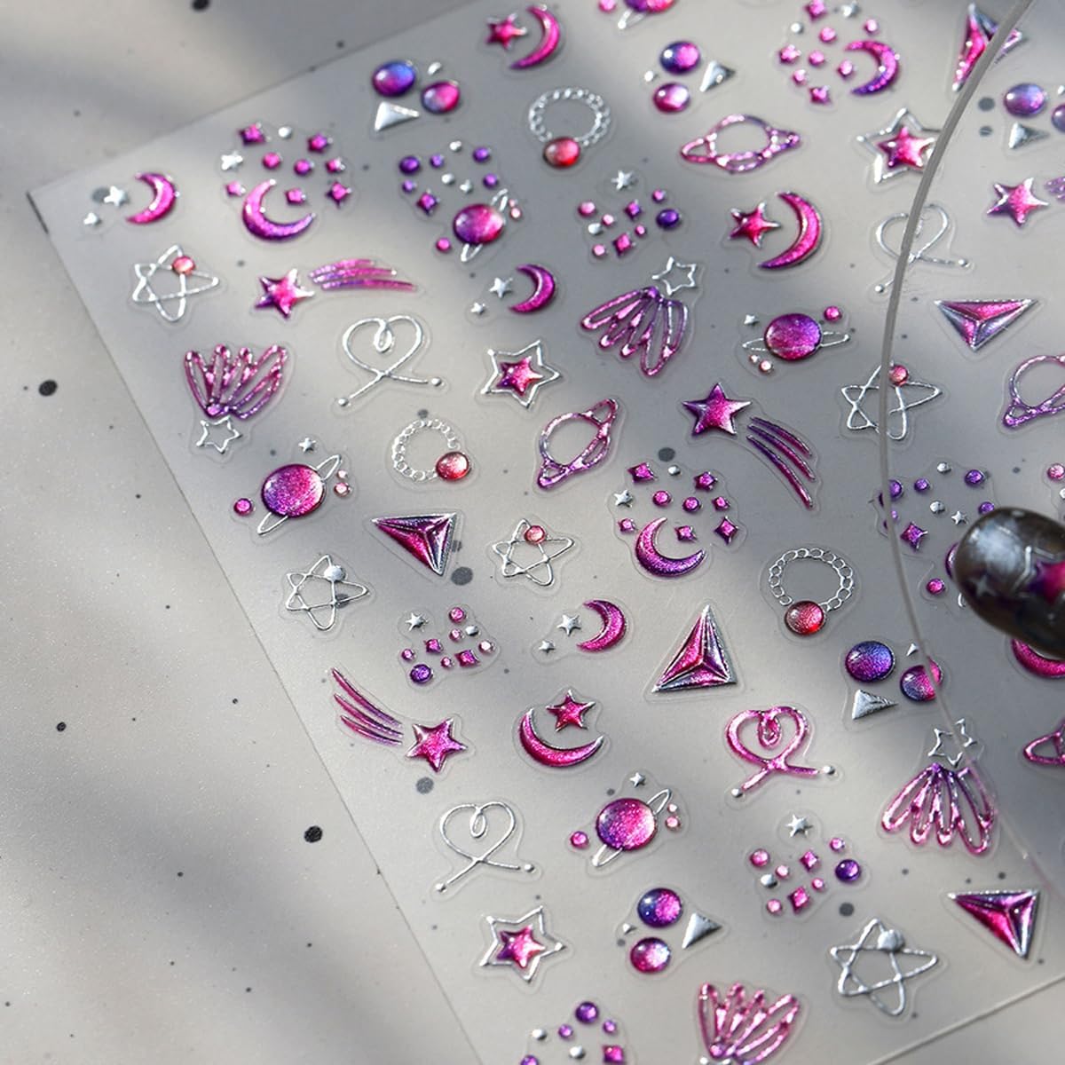 Purple Nail Art Stickers Star Moon Nail Decals 5D Embossed Jelly Nails Stickers Self Adhesive with Design for Women Girls Kid Manicure Charms Supply DIY Decoration Accessories