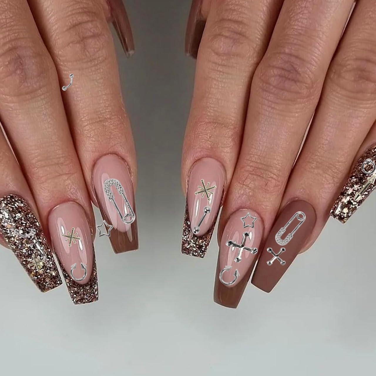 - Silver Star Nail Charms - Featuring designs like crosses, stars, planets, Rivets,and more, these silver charms offer a wide range of styles to suit various nail art themes and personal tastes.