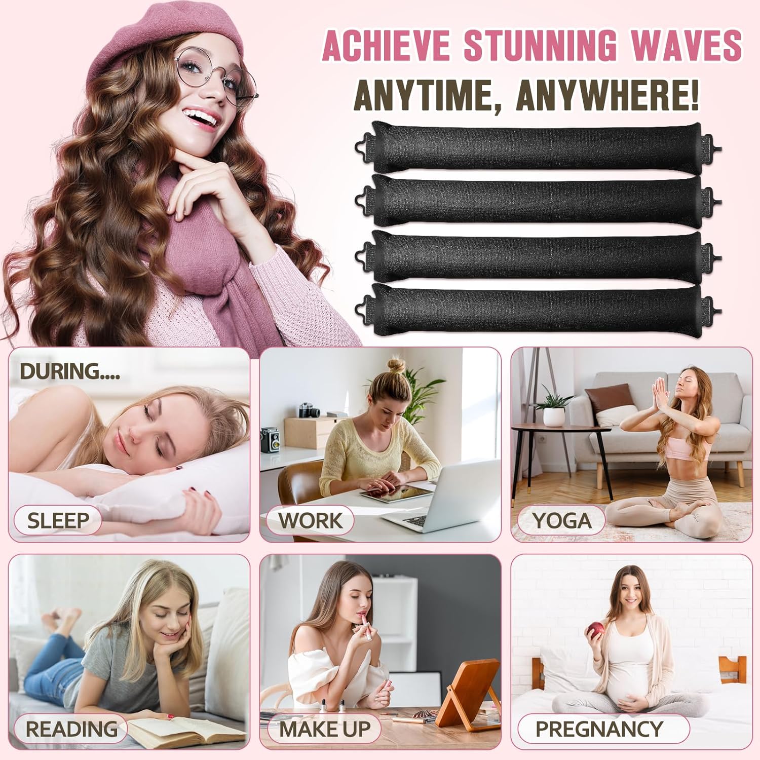 - 【Overnight Hair Curlers】: These heatless curls are soft and comfortable to wear, so they're a great option for nighttime use, and after a night's sleep, your hair will curl naturally without the need for any styling tools.