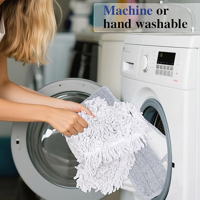 - Machine-Washable Mop Pads: The mops for hardwood floors set includes 1 cotton pad and 2 microfiber pads, all of which are machine-washable and reusable. The cotton pad has strong adhesion and is more suitable for dry mopping, leaving no dust behind. The microfiber pad has strong water absorption and is more suitable for handling water stains and oil stains. Suitable for various floor materials, such as solid wood flooring, tiles, marble, concrete, stone, etc.