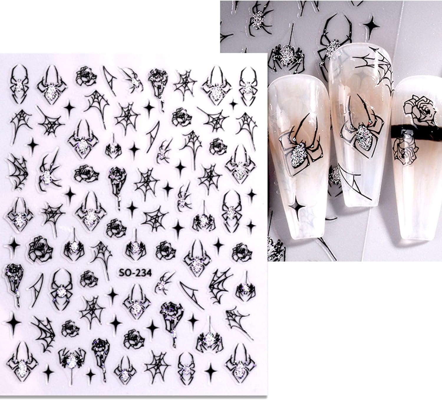 6 Sheets Halloween Nail Stickers Gold Silver Nail Decals for Nail Art Glitter Spider Nail Decals Spider Web Rose Stars Love Heart Design Nail Art Stickers for Women Girls DIY Nail Decorations
