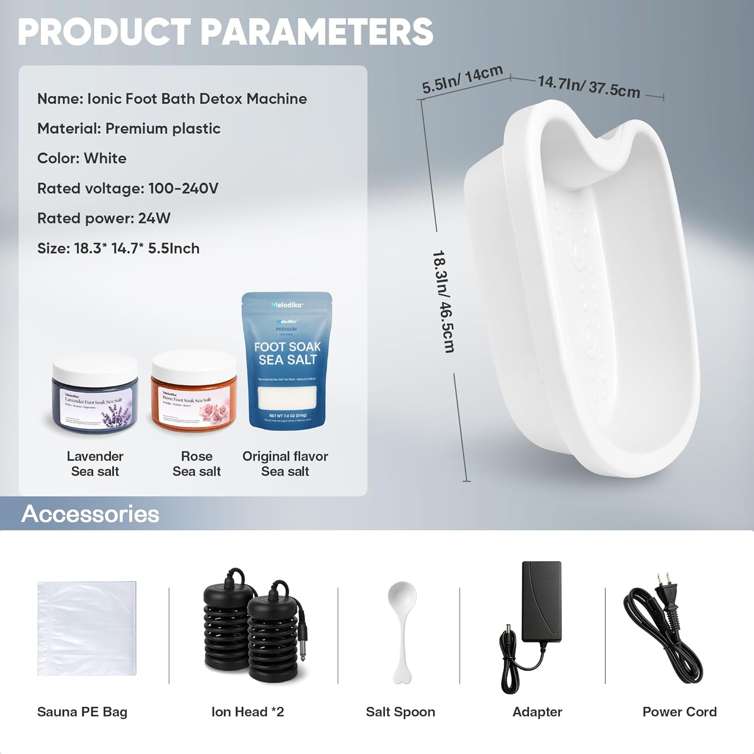 - 3 Premium Sea Salts for Enhanced Benefits: Each ionic foot bath includes 3 specially formulated sea salts (original /lavender/rose) to customize your spa experience. These salts work synergistically with the ion technology to maximize detox effects, relieve stress, and nourish your skin for a truly luxurious experience.
