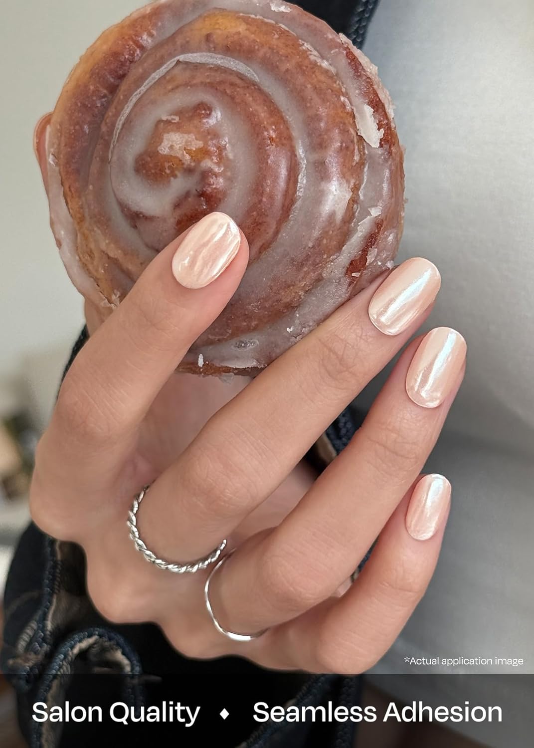 ohora Semi Cured Gel Nail Strips (N Vanilla Chrome) - Works with Any Nail Lamps, Salon-Quality, Long Lasting, Easy to Apply & Remove - Includes 2 Prep Pads, Nail File & Wooden Stick