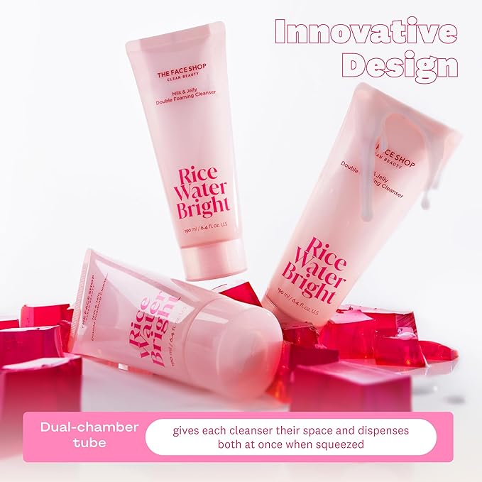 The Face Shop Rice Water Bright Milk & Jelly Double Cleanser, Double Cleansing in Half the Time, 2-in-1 Makeup Remover & Face Wash, Hydrating & Moisturizing, Korean Skin Care, Vegan, 6.4 fl. oz.