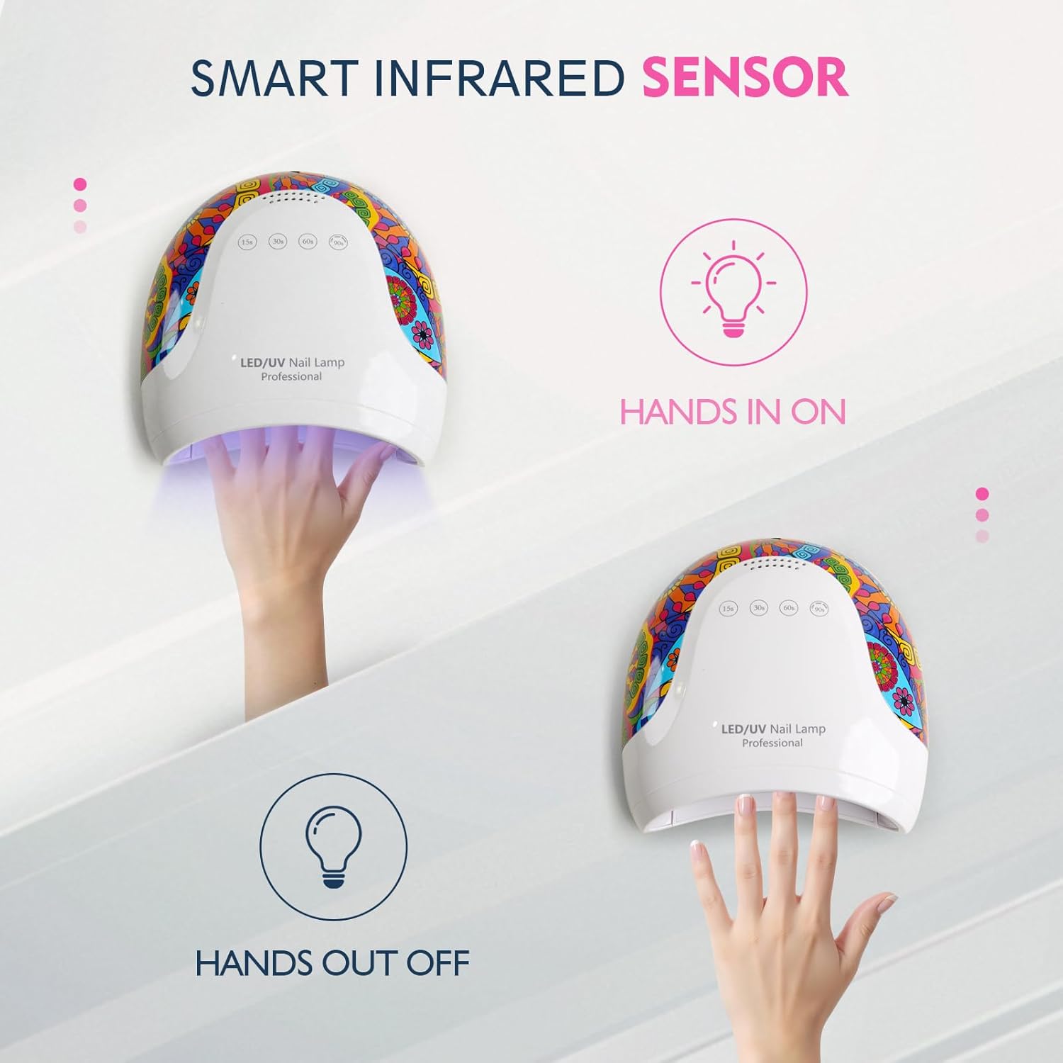 - SMART SENSOR & 4 TIMER MODES: The smart infrared sensor activates automatically when you place your hands inside, so there's no need to touch buttons. It also offers four precise timer settings (15s/30s/60s/90s), including a painless low-heat mode