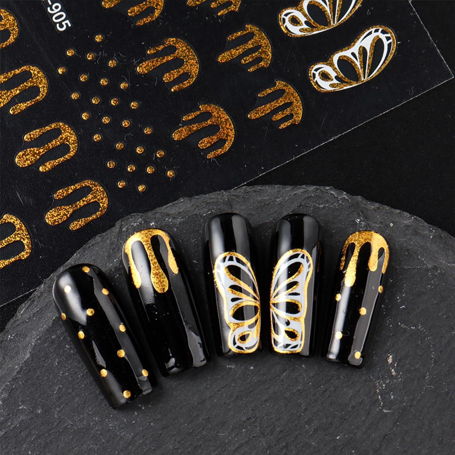 - Quantity: You will get 6 sheets of Halloween glitter nail art stickers, including blood drop and butterfly pattern designs, not easy to fall off or fade, can easily create a variety of themed nail art