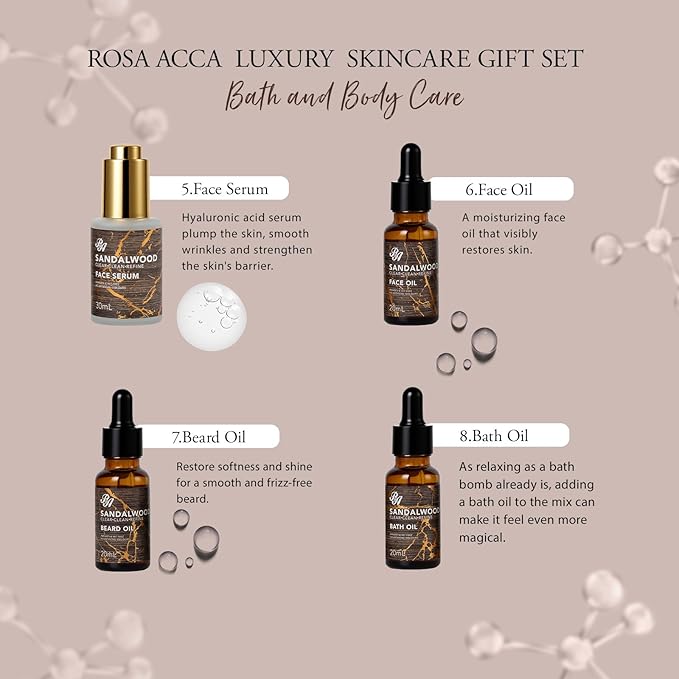 Sandalwood Beard Grooming Set For Men, 21 Pcs Facial Skin Care Set, Spa & Self-Care Gift, Bath and Body Gift Set, Bath Bomb, Bear Oil, Face Serum, Birthday, Christmas, Valentines, Father Day, Husband