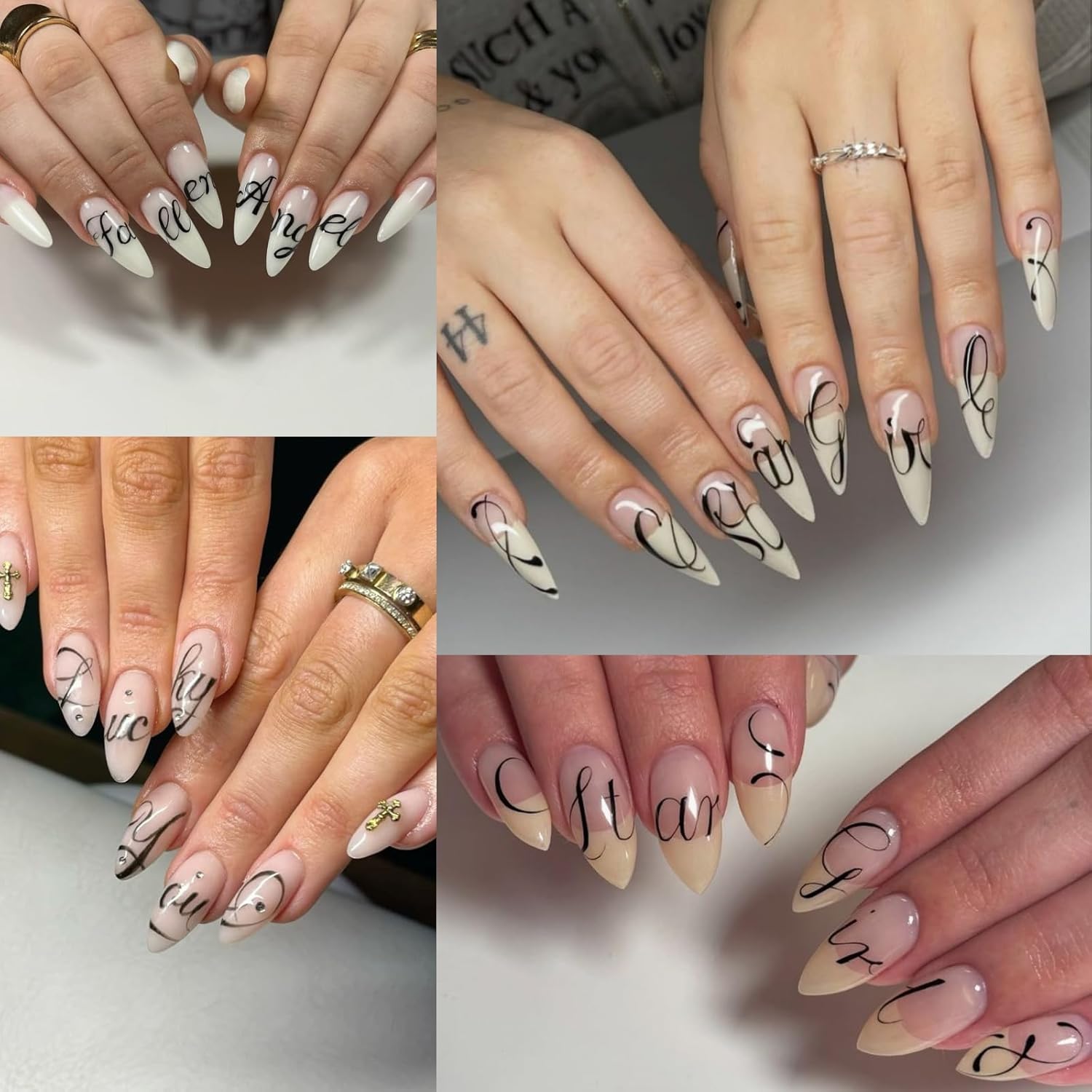 6 Sheets Gothic Nail Art Sticker Decals, Russian Letters Notes Nail Stickers Holiday Nail Decals for Nail Art Black Graffiti Style Design Nail Supplies Elegant Self Adhesive Decals for Women Decor