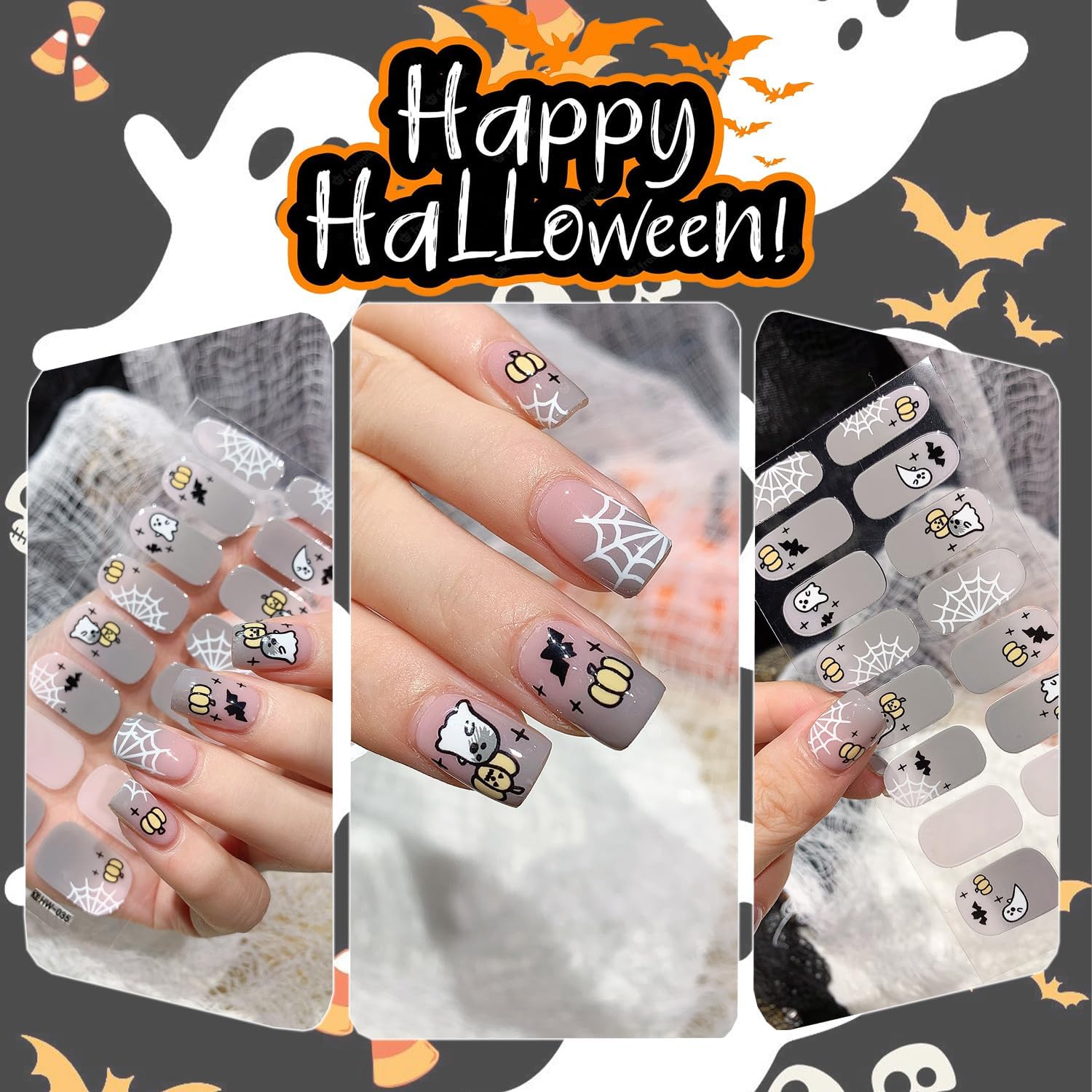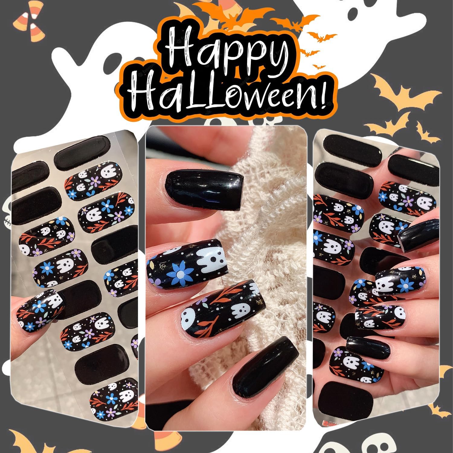 6 Sheets Horror Halloween Gel Nail Wraps Spider Web Flower Ghost Nail Polish Stickers Self-Adhesive Bat Pumpkin Spider Gel Nail Stickers Scary Halloween Holiday Nails Strips for Women