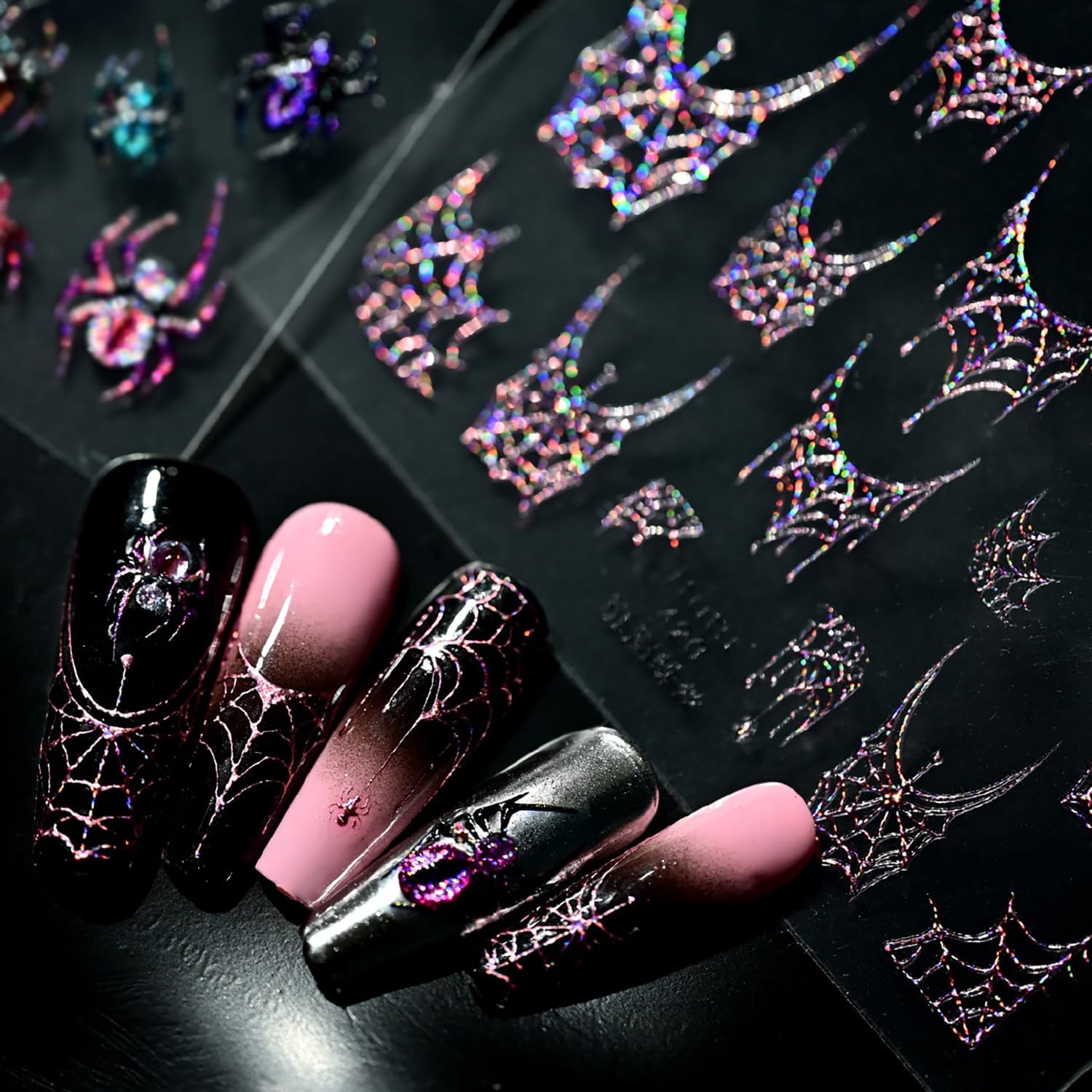 - Package Include: You will get 1 sheet Halloween nail design stickers in one package. Exquisite Spider Web nail design decoration can provide you with a variety of choices, allowing you to easily DIY your designer nail decoration at home