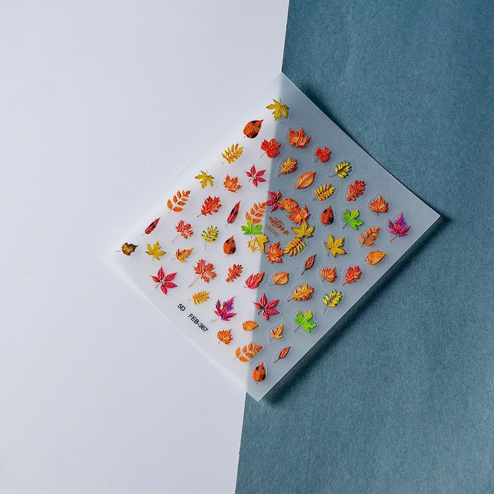 Fall Nails Stickers Maple Leaves Nails Sticker 5D Embossed Autumn Leaf Self Adhesive Sticker Nail Decals Orange Red Yellow Thanksgiving Nail Art Decal Halloween Decals for Nail DIY Manicure 1Sheet