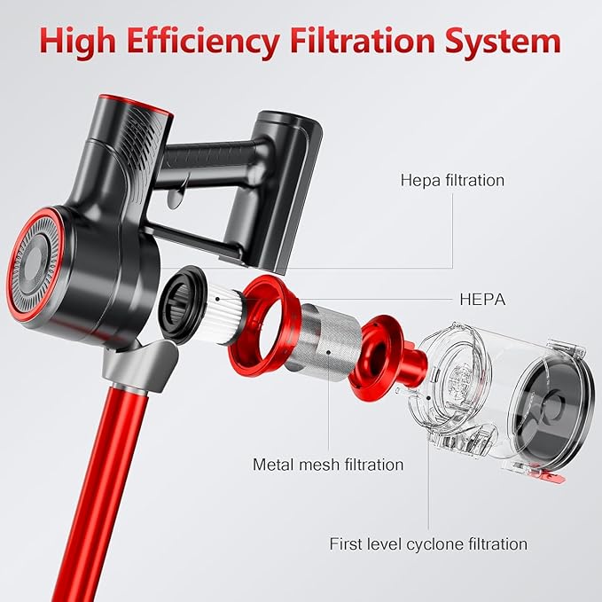 - đăEfficient filtration systemăCorded Vacuum cleaner features a fully sealed cyclone filtration system with a HEPA filter and stainless steel filter, capturing up to 89.99% of fine dust particles . It effectively prevents secondary pollution and ensures clean, fresh air